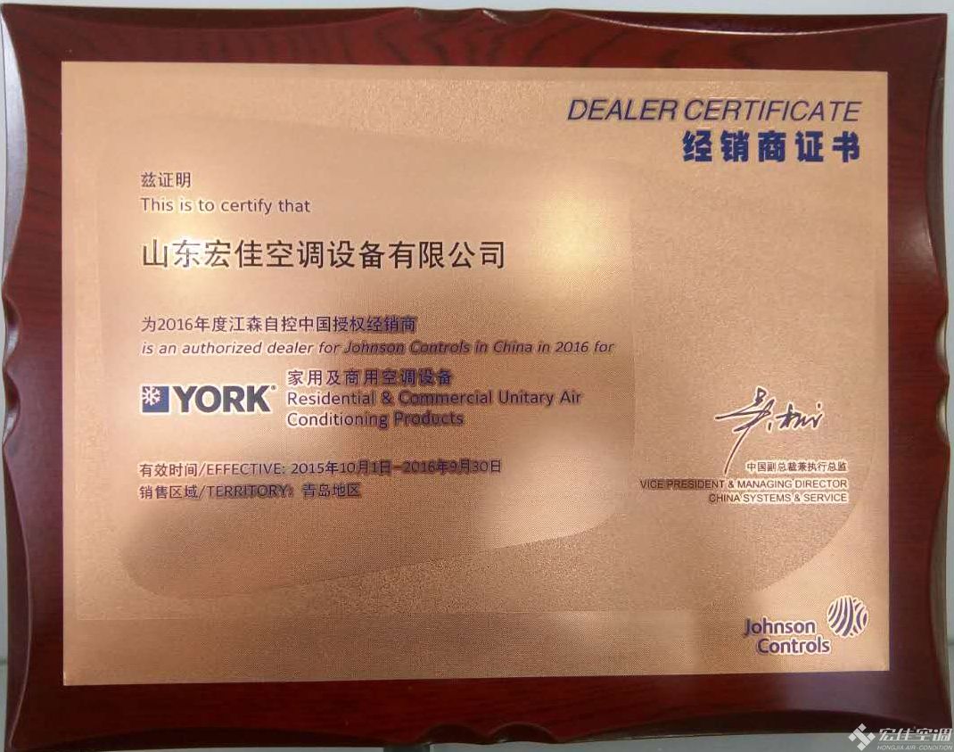約克中央空調(diào)區(qū)域代理 授權(quán)書