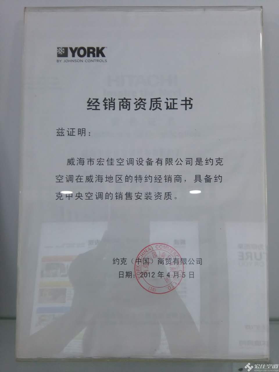 約克特約經(jīng)銷商資質(zhì)證書(shū)