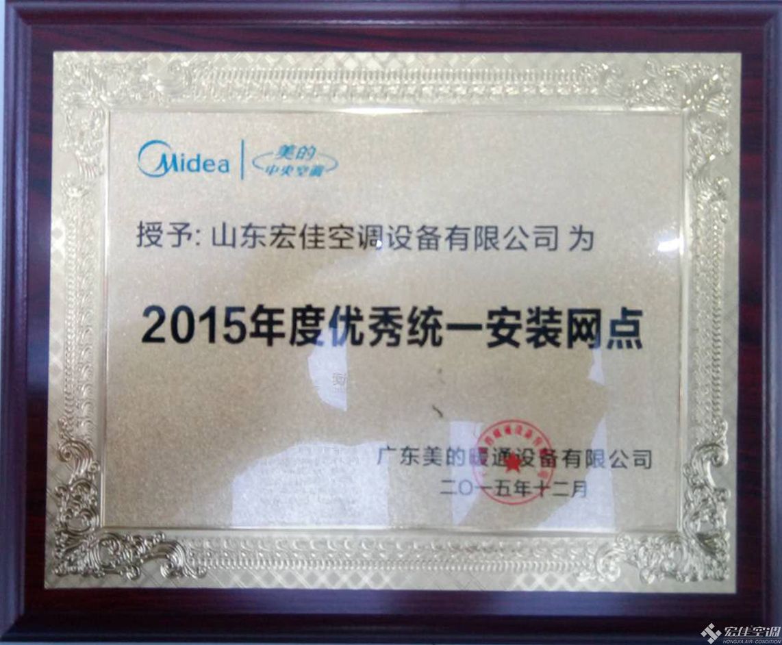 美的中央空調優(yōu)秀統(tǒng)一安裝網(wǎng)點獎